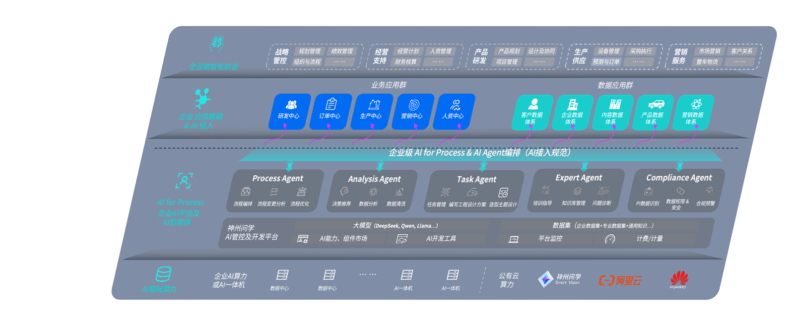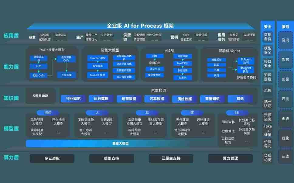 端到端的一站式AI工作空间深度融合了从企业战略规划到日常经营的全流程业务板块,,,定向解决车企内部领域多、、、、部门多、、、、链条长、、、场景碎片化等难题,,,支持车企快速构建以AI为核心的生产力写作体系,,实现任务执行与AI能力的无缝集成与交互